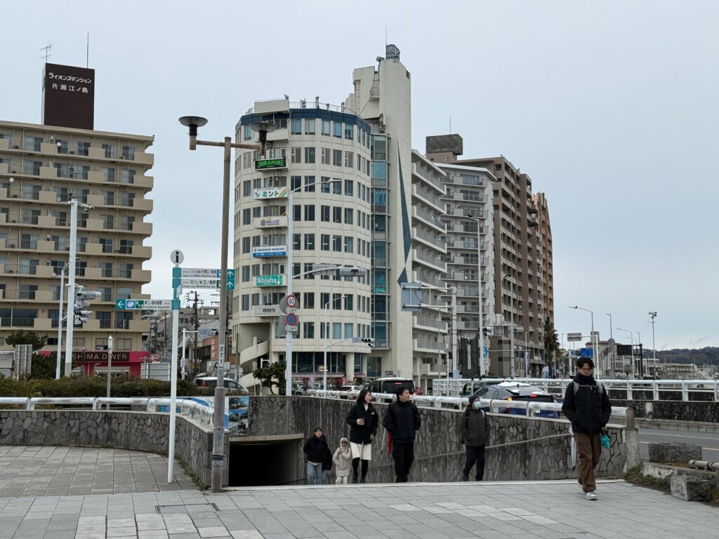 江ノ島に行くのは20数年ぶりのことである。実家に住んでいた頃、よく自転車に乗って国道134号を走って江ノ島に行っていた。江ノ電も久しぶりに乗車し、情緒あふれる車外を眺めていた。漫画の「SLAM DUNK」で有名になってしまった鎌倉高校前の踏切を見て、「この悪天候の中、多くの人が聖地巡礼しているな」と思ってしまった。